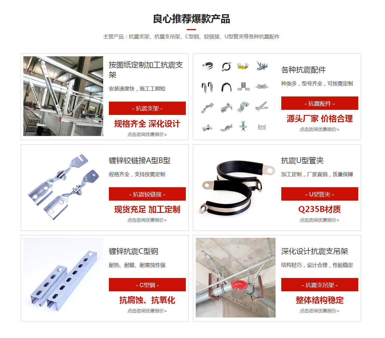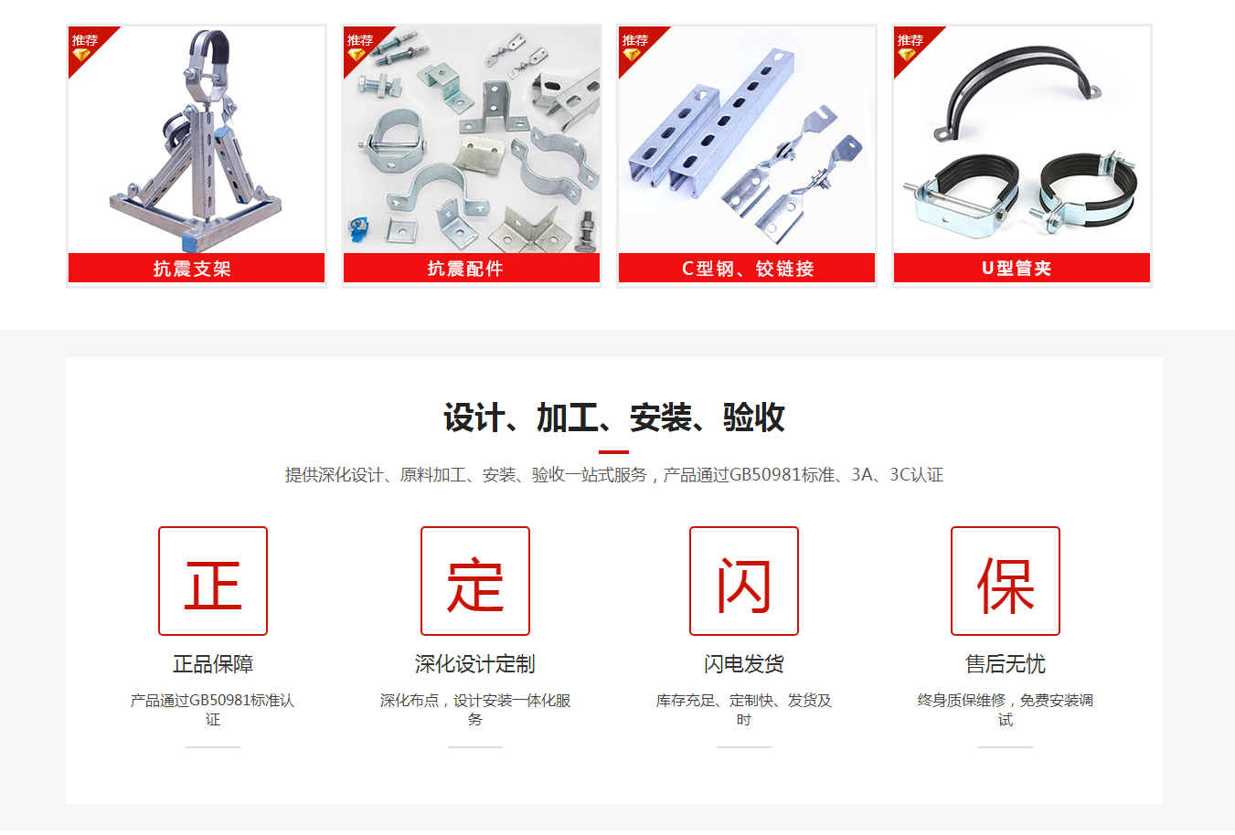 主营产品:抗震支架,抗震支吊架,抗震配件,U型管夹,C型槽钢,铰链接